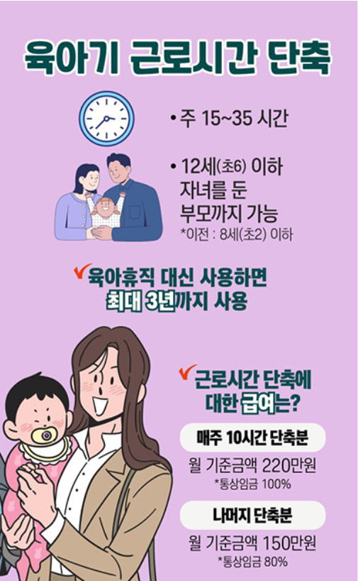 육아기 근로시간 단축 제도의 최소 사용 단위 기간도 3개월에서 1개월로 단축됩니다.