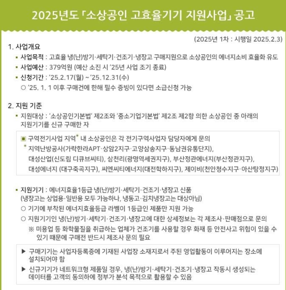 최근 산업통상자원부는 소상공인의 에너지비용 부담완화를 위한 2025년도 소상공니 고효율기기 지원사업을 발표했습니다.
