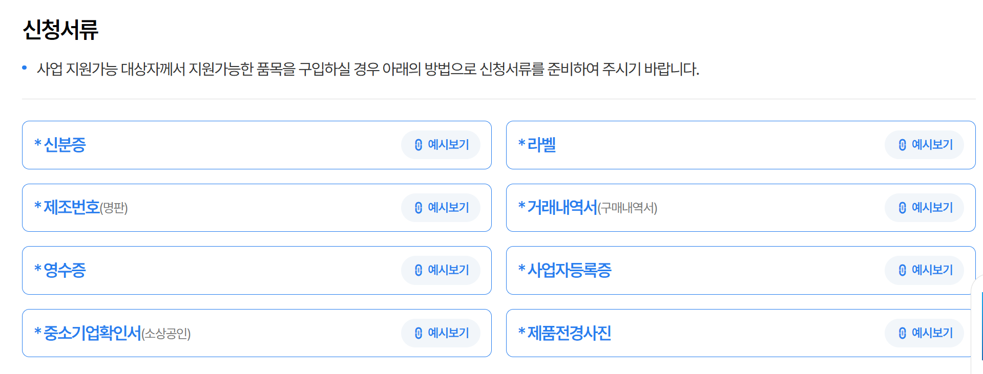 신청을 원하는 사업자는 다음과 같은 서류를 준비해야합니다.